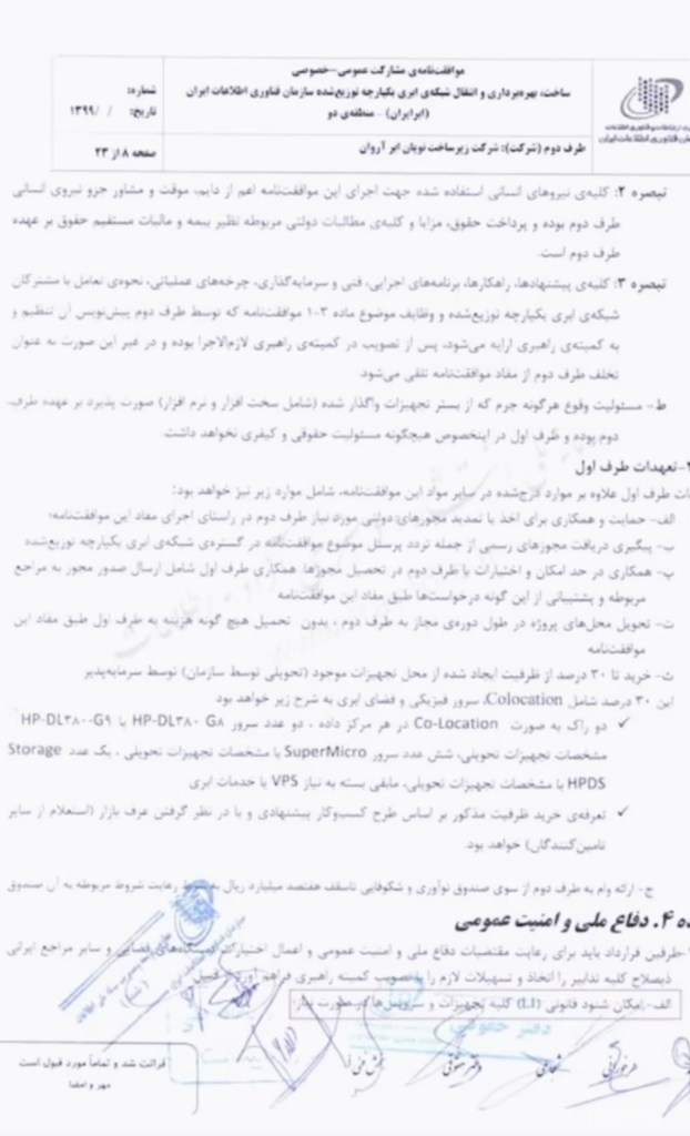 Infrastructure agreements involving Iran’s Information Technology Organization show that national cloud systems, including the state-backed “Iran Cloud” network, were designed as part of the regime’s internal security infrastructure, allowing authorities to constantly monitor and control domestic connectivity while restricting access to the global internet during protests.