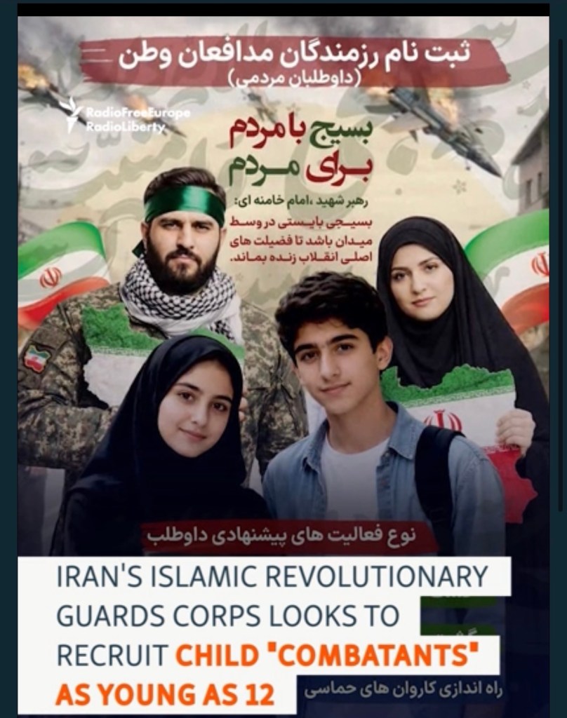 - Children as young as twelve, as well as teenagers, may be recruited into the Basij or the IRGC. This is currently happening in Iran.